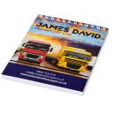 Desk-Mate® A5 notepad wrap over cover. White A5 Desk-Mate® notepad with wrap cover. Includes blank paper sheets of 80g/m2. Standard delivered with 50 sheets, also available with 25 or 100 sheets. Decoration is possible on each sheet. Sheet dimension: 148x210mm. Paper, cardboard.