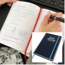 A5 Casebound Notebook with an elastic closure, pen loop and coloured ribbon, made to order in the UK finished in soft touch Belluno PU with a real leather look and feel Belluno is available in a choice of 22 colours each with a unique colour change when embossed, making your branding distinctive and accurate even on fine detail