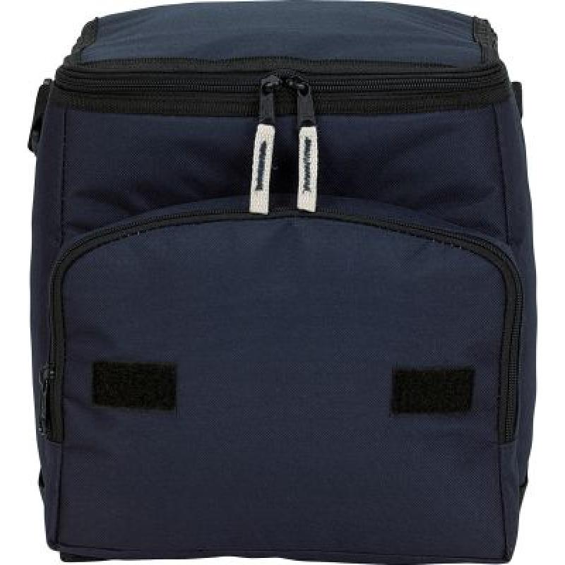 Stockholm foldable cooler bag. Foldable cooler bag with zipped main compartment and zipper front pocket. Adjustable shoulder strap. The cooler bag can be folded flat due to the hook & loop on front pocket. Accessories not included. 600D Polyester.