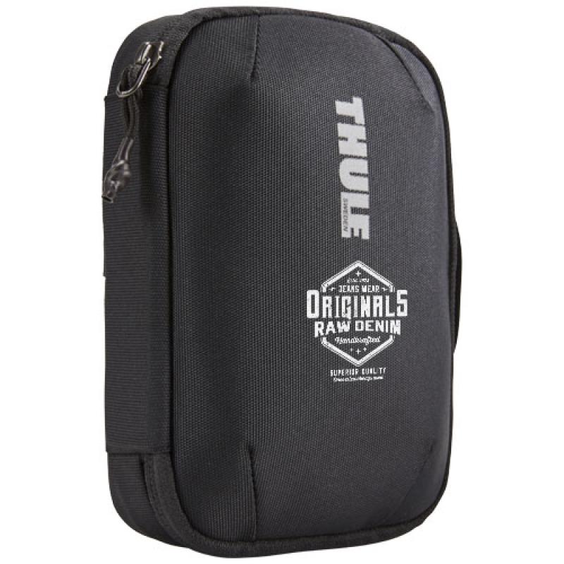 Accessories bag with organizational pockets and loops ideal for cables, earbuds, adapters, or other small items. Easily fits into a handbag or backpack or to keep small belongings organized in the airline seat pocket. Nylon.