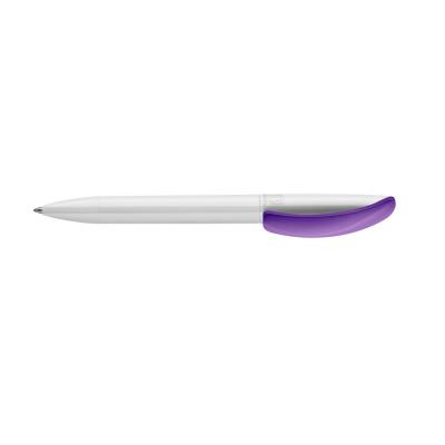 New modern twist action ballpen with solid white barrel and a huge choice of coloured clips. Black ink refills.